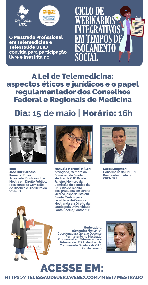 O Mestrado Profissional em Telemedicina e Telessaúde convida para participação livre e irrestrita no Ciclo de Webinários Integrativos em tempos de isolamento social.
