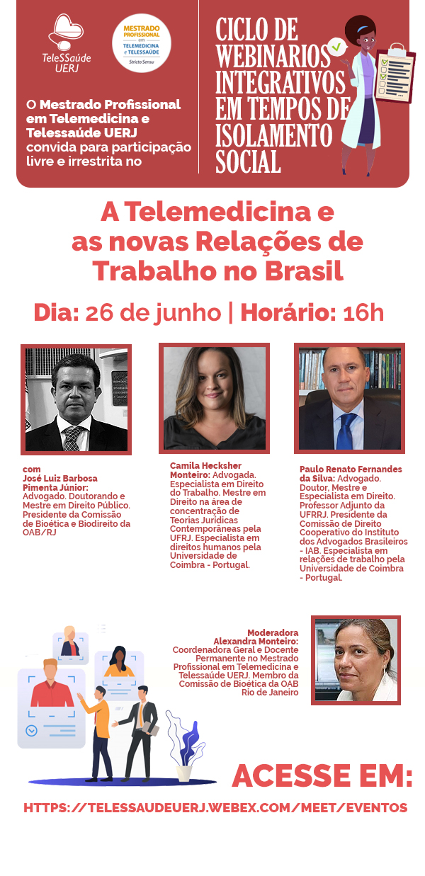 O Mestrado Profissional em Telemedicina e Telessaúde convida para participação livre e irrestrita no Ciclo de Webinários Integrativos em tempos de isolamento social.