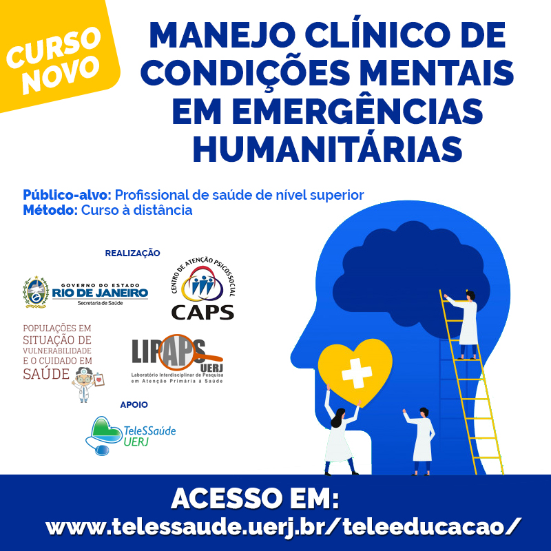 O Telessaúde UERJ e a FCM/UERJ, com apoio e parceria com a Secretaria de Estado de Saúde do Rio de Janeiro (SES/RJ), através da Coordenação de Atenção Psicossocial da Superintendência de Atenção Psicossocial (CAPS) e Populações em Situação de Vulnerabilidade (SAPV), conjuntamente com o Laboratório Interdisciplinar de Pesquisa em Atenção Primária à Saúde da Universidade do Estado do Rio de Janeiro (LIPAPS/UERJ), oferecem essa capacitação à distância em saúde mental durante a pandemia como forma de enfrentamento desta grave crise humanitária.
