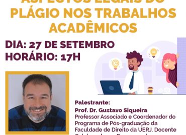 Aspectos Legais do Plágio nos Trabalhos Acadêmicos. Dia 27/09/2021, segunda-feira, às 17h. Prof. Dr. Gustavo Siqueira. Professor Associado e Coordenador […]