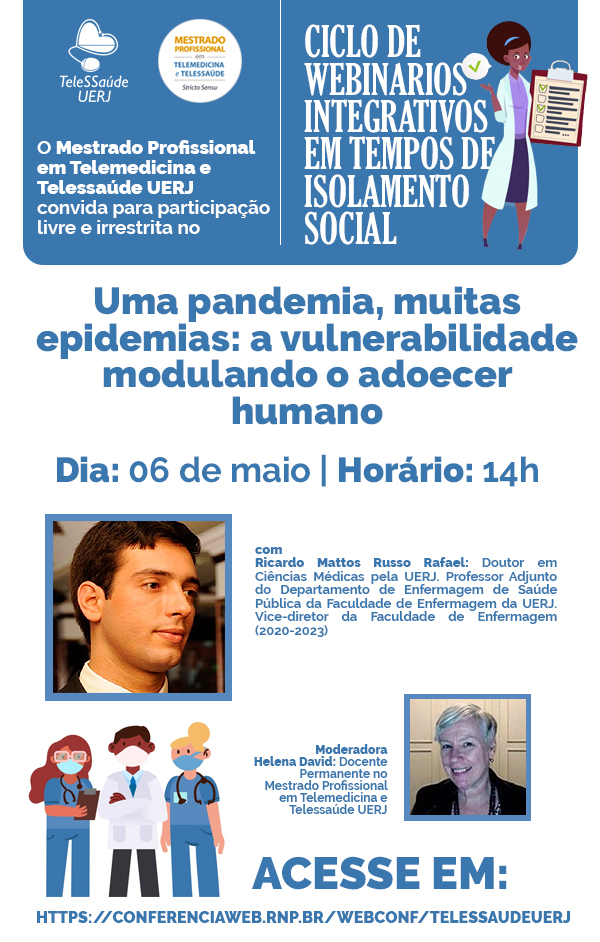 O Mestrado Profissional em Telemedicina e Telessaúde convida para participação livre e irrestrita no Ciclo de Webinários Integrativos em tempos de isolamento social.