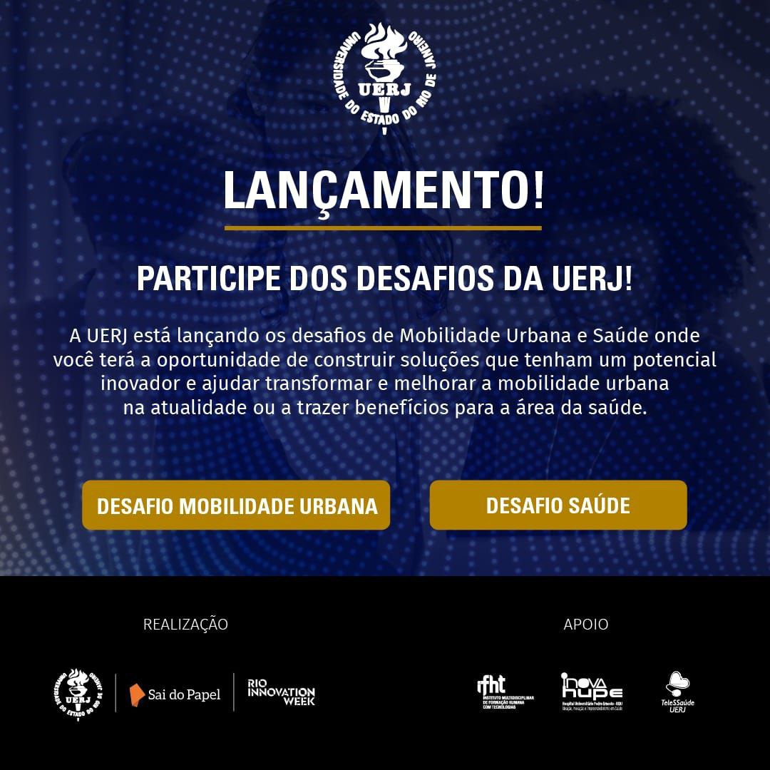 A UERJ está lançando os desafios de Mobilidade Urbana e Saúde com o objetivo de desenvolver soluções inovadoras e difundir o tema no meio empresarial.