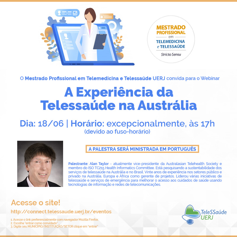 O Mestrado Profissional em Telemedicina e Telessaúde UERJ convida para o Webinar: A Experiência da Telessaúde na Austrália.