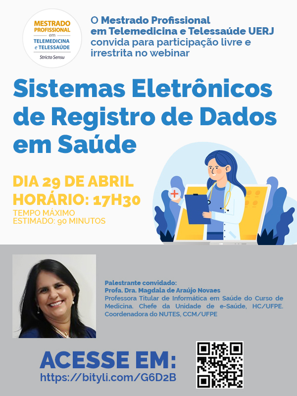 O Mestrado Profissional em Telemedicina e Telessaúde UERJ convida para o Webinar Sistemas Eletrônicos de Registro de Dados em Saúde ?